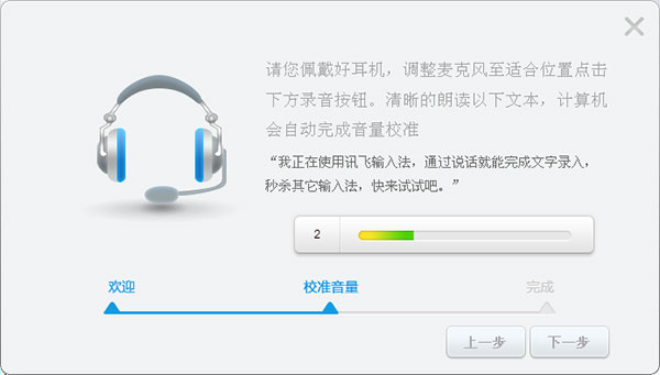 首次启用语音功能时,需要您根据向导提示进行音量,可以将您的录音设备调整至最佳状态。