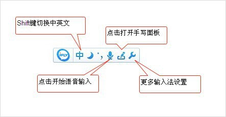 首先需要将输入法切换到讯飞输入法,电脑桌面会显示输入法状态栏,如下图所示: