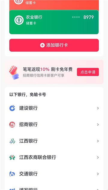 3、点击【银行卡】。
