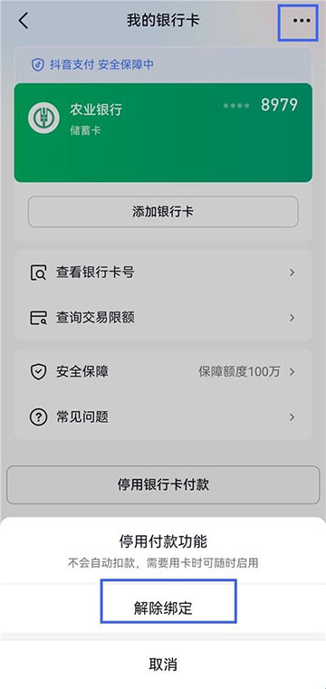 5、点击右上角三点标识,点击【解除绑定】。