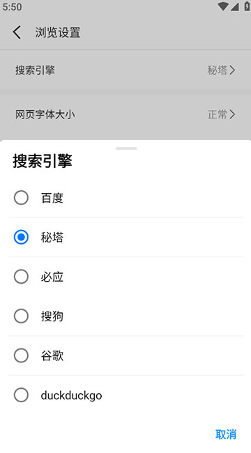 5、可选择百度、秘塔、必应、搜狗、谷歌等不同的搜索引擎。