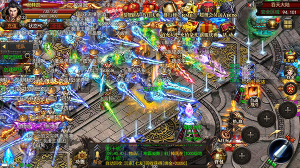 支持多个服务器之间的数据互通与跨服战场,高峰时段可实现万人同屏激战,攻城战、BOSS争夺战流畅不卡顿。