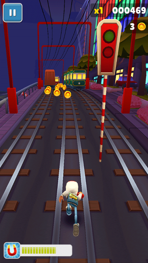 2、道具连击系统:连续拾取同类型道具(如喷射背包、超级跑鞋)可触发连击效果,分数倍率从2x叠加至8x,搭配滑板技能可突破单局得分上限。