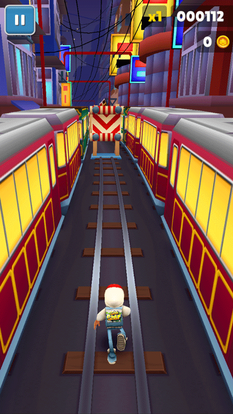 1、动态障碍物机制:除固定列车外,会随机出现移动的红色出租车、推车摊贩与施工围栏,要求玩家快速预判跳跃或滑铲路线。