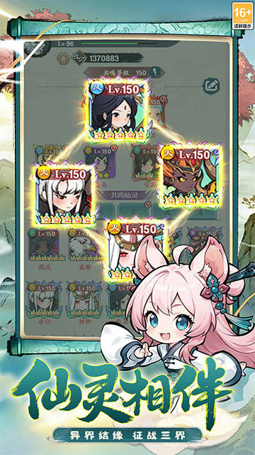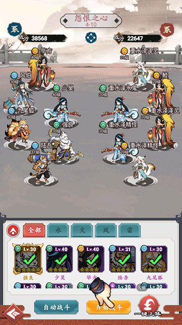 水、火、风、雷四大阵营相生相克,自由搭配灵兽与阵法,运筹帷幄制霸山海。