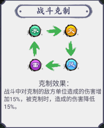 火→风→雷→水→火,循环克制,遇到关卡打不过,先看敌方阵营,切换克制阵营角色,低战力也能轻松通关;同阵营凑3-4人可激活羁绊,获得大幅属性加成,优先凑同阵营阵容。