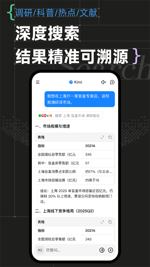 Web端/App端需手动点击联网搜索按钮;若未开启,Kimi将仅基于训练数据或上传文件回答。
