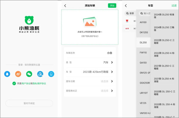 使用手机号或(微信、支付宝、QQ、微博)登录,添加爱车、设置车型。