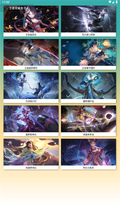 王者荣耀盒子助手是一款为王者荣耀玩家所打造的实用辅助工具软件,有着ID个性化修改、游戏资源管理、对战数据查询与设备优化等强大功能。它不仅支持王者各种花式爱心昵称、重复名等用户名ID的更改,还提供海量皮肤、英雄、铭文攻略及高清壁纸下载,并且采用了轻量化设计,运行稳定不占用后台资源。有了它,游玩过程将变得更快乐,更有趣。