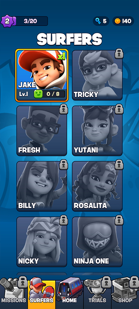 皮肤类型:街头、朋克、嘻哈、运动。皮肤技能:金币+10%、得分+5%。可解锁隐藏角色(如“忍者”“机器人”)。