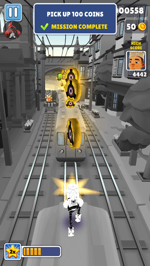 地铁跑酷黑白牛津版是一款基于经典跑酷玩法、融合英伦学术与街头涂鸦艺术风格的主题版本。游戏将场景设定在牛津郡的地铁与古老街道之间,玩家将扮演一位在铁轨上躲避巡查员与猎犬的滑板少年,一边收集字母徽章与牛津词典残页,一边解锁英伦主题道具。整体视觉采用黑白灰与点缀的学院红,配合轻快的电子管弦乐,带来既复古又现代的新鲜跑酷体验。作为一款融合英伦学术与街头涂鸦艺术风格的主题版本,它保留了原版爽快的跑酷核心,同时用单词收集和低疲劳画面降低了重复感,尤其适合喜欢安静节奏或希望利用碎片时间学点英语的玩家。如果你厌倦了霓虹色块的激烈跑酷,不妨试试这趟驶向牛津郡的地铁。