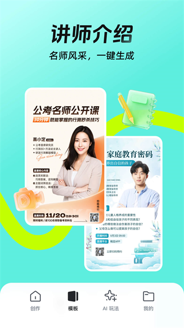 搞定教培物料:招生图、课程宣传图、讲师开课图,招生培训更高效。