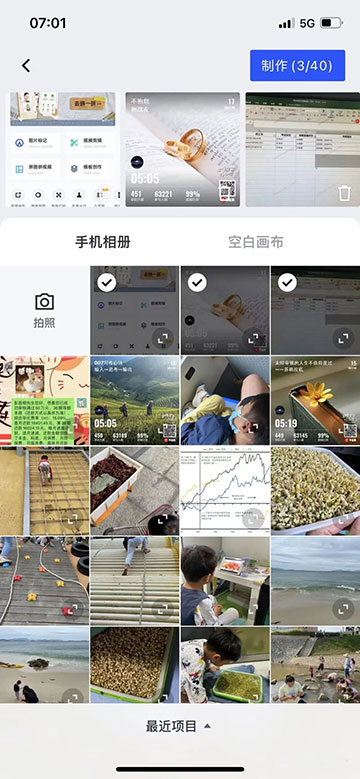 2、在弹出的框中选择需要操作的多张照片,然后点击“制作”;