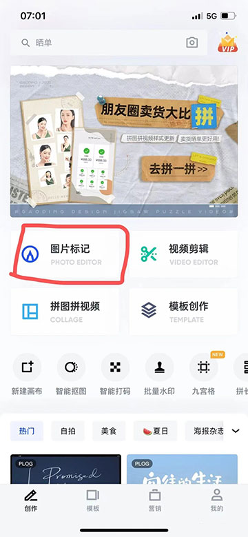 1、打开稿定设计App,选择“图片标记”;