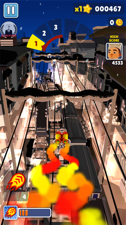 不同于传统跑酷的固定障碍,本作加入了移动式列车、间歇性喷泉、突发大雾或雨天等动态变化,考验玩家实时反应能力。