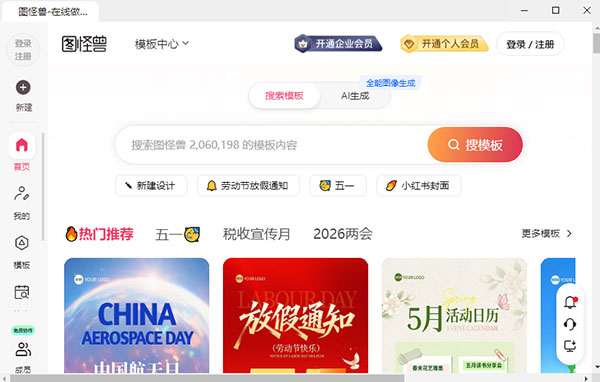 如果你没有PS知识,想要使用一键的傻瓜式作图功能,那不妨试试:图怪兽电脑版,这是一款在线图片编辑服务平台,提供图片模板元素,用户通过替换修改文字来完成图片设计。图怪兽根据不同场景创建模板,满足了企业管理、新媒体运营、HR行政、教师、个体经营者的图片设计需求。并且软件操作方式简单,并为不同场景的图片模板设置合适尺寸,让没有专业技能的普通大众也可以轻松设计图片。支持模板作品下载,以及模板作品保存功能,作品存储在云端,安全方便。此外,图怪兽电脑版还为您免费提供在线实用工具,让您作图更加轻松,体验更加完美。