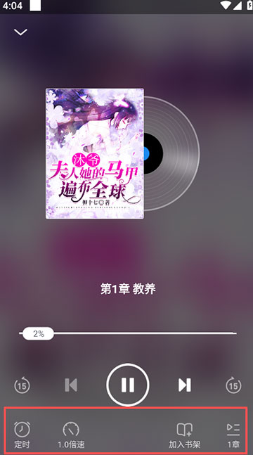 4、接着即可开始听书了,同时还可调整听书速度、章节,也可以定时。