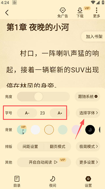 流畅舒适的界面满足你 背景颜色主题的切换 字体 字号的随意变换 夜间模式等功能给你无与伦比的阅读享受,畅享品质阅读。