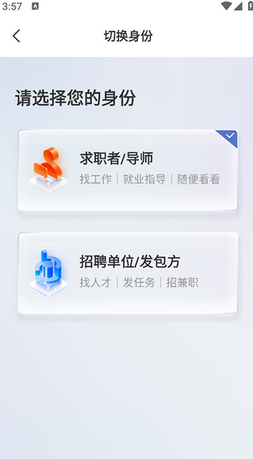 注册完成后,选择你的身份然后输入求职意向。