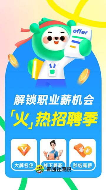 青团社兼职App是由杭州弧途科技有限公司打造的一款国内领先的大学生兼职平台,致力于为求职者提供专业的服务,让求职者就业更简单!其中提供了丰富的岗位,覆盖20个大类280种岗位,如:麦当劳、必胜客、星巴克、沃尔玛……还提供网红探店、艺术展览志愿者等创意类、体验类项目,不少项目支持日结,并且岗位信息11重审核,确保岗位真实、优质,有效!此外,任何发生在平台内的兼职纠纷,平台会积极参与解决,全面多效保障用户权益。需要的用户欢迎下载使用!