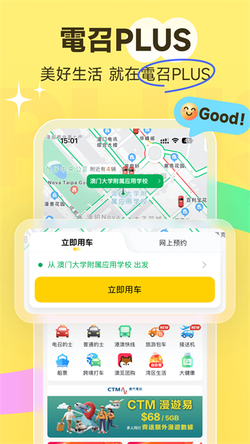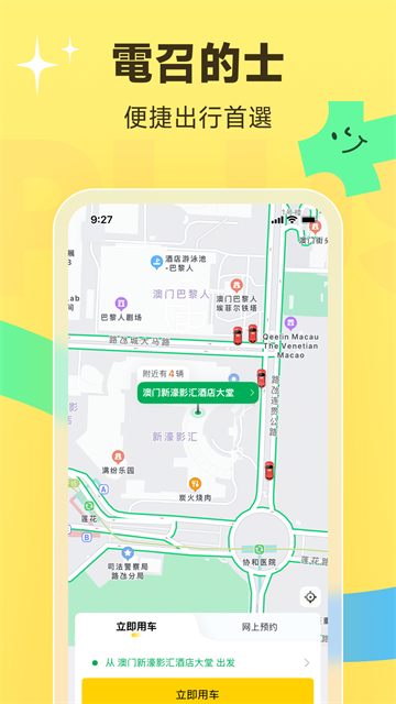 澳门电召是一款专为澳门居民和游客设计的便捷出行呼叫软件,致力于解决澳门交通汇聚、的士难等问题。客户可以通过手机轻松通话各种的士,实时查看车辆位置和预期到达时间。适用在线支付和现金支付,让用户有高效、安全、透明色出行感受。作为一款专门给澳门居民和游客设计的便捷出行呼叫软件,无论您是第一次浏览澳门的游客,或是日常出行的地方居民,都能成为您信得过的出行助手。