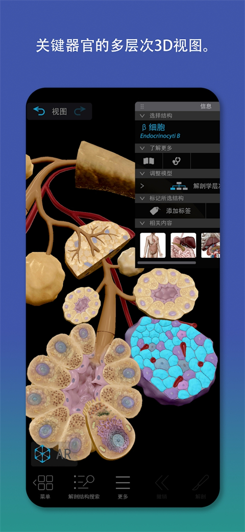 4、双语与术语查询:支持中文(简体/繁体)及英文界面,所有结构名称均附拉丁语Terminologia Anatomica标准术语,可一键切换并语音朗读。